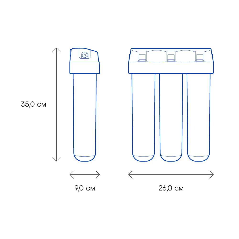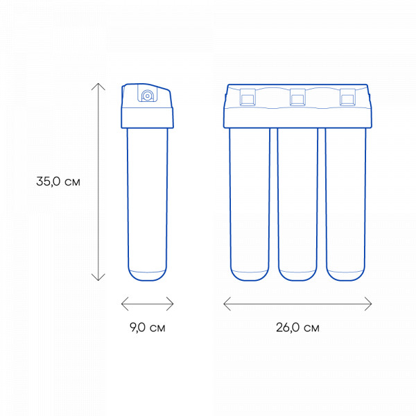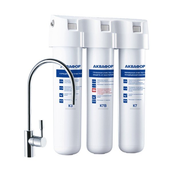 Обратноосмотические фильтры используются для абсолютной защиты от накипи, т.к. полностью устраняют соли жесткости из воды.нетЧисло ступеней очисткиКартриджи последовательно очищают воду и от видимых примесей, и от растворенных. Первый картридж задерживает более крупные частицы, а каждый последующий - более мелкие. Чем больше ступеней - тем лучше фильтр очистит воду: поймает более мелкие видимые частицы ржавчины, песка и ила, успеет захватить из воды максимум растворенных примесей - хлора, нитратов, тяжелых металлов и других.4МинерализацияПроисходит после финишной очистки воды. Необходима прежде всего в фильтре обратного осмоса, поскольку такой фильтр полностью устраняет из воды все примеси, в том числе минералы. Минералы добавляются в оптимальной концентрации - для пользы и привычного вкуса воды.нетПостфильтрацияФинальный этап очистки воды: картриджи постфильтрации удаляют самые мелкие механические частицы и кондиционируют воду, придавая ей более приятный вкус.нетНакопительная емкостьОбычно нужна в фильтрах обратного осмоса. Глубокая фильтрация требует времени. Чтобы Вам не приходилось ждать, пока вода наберется в чайник или кастрюлю, почти во всех моделях используется накопительный бак для чистой воды или другая емкость. В стандартном фильтре обратного осмоса под мойку воды в баке достаточно для семьи из 5-6 человек.нетФильтрующий модуль в комплектедаОтдельный крандаДавление в водопроводе не более, атмМаксимальное давление воды на входе в систему, при котором возможна стабильная работа фильтра.6,5Ширина, смОбратите внимание на габариты фильтра, и измерьте, сколько свободного пространства в предполагаемом месте установки.26,0Глубина, смОбратите внимание на габариты фильтра, и измерьте, сколько свободного пространства в предполагаемом месте установки.9,0Защита корпуса от гидроударовдаИсходная водаЖесткая вода – вода с избытком минеральных солей. От нее появляется накипь в чайнике, известковый налет на сантехнике и разводы на посуде. Мягкая вода – та, в которой мало минеральных солей. Нет накипи в чайнике и разводов на посуде. Фильтры для мутной воды и фильтры от ржавчины, как правило, имеют несколько стадий очистки и дополнительный полипропиленовый картридж. Он задерживает механические частицы ила, песка и ржавчины и защищает картриджи более глубокой очистки.мягкаяУстраняет мутностьМутность водопроводной воды может говорить о том, что в ней много мелких механических частиц. Важно, чтобы в фильтре был установлен дополнительные картридж механической предфильтрации (полипропиленовый) - он продлит жизнь остальным картриджам более тонкой очистки.даУстраняет ржавчину, бурый осадокЛюбой фильтр под мойку удалит из воды крупные и мелкие частицы ржавчины. Некоторые фильтры имеют повышенный ресурс по железу: они дольше служат в такой воде, поскольку лучше подходят для удаления из воды железа и механических частиц ржавчины.даЗащита от бактерийВсе проточные фильтры в той или иной степени защищают от бактерий. Например, добавление серебра препятствует их размножению. Это стандартная степень защиты. Если в семье есть дети, пожилые люди или аллергики, воду рекомендуется обеззараживать, то есть полностью удалять микроорганизмы. Повышенную защиту от бактерий дают фильтры с половолоконной мембраной. Это пучок трубо